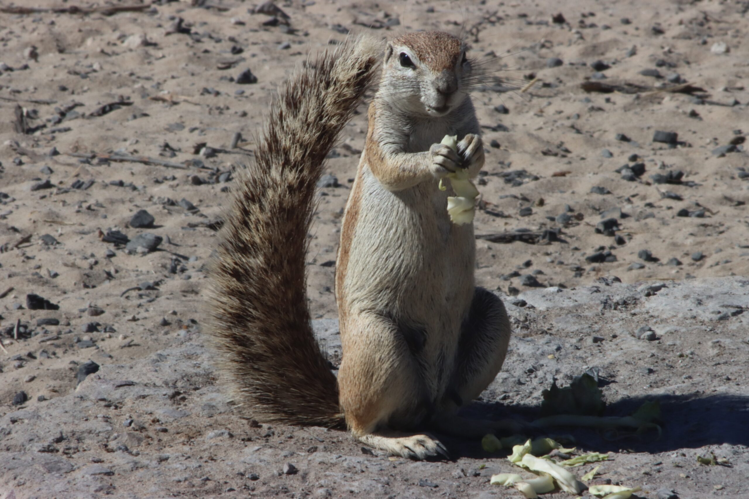 • Unser Lieblings-Campsite ist Mabuasehube Pan 2 – die dort lebende Hörnchen-Kolonie will gefüttert, die lokale Vogelwelt mit Wasser versorgt werden!