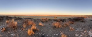 Links und rechts von uns hält der Schatten Einzug über der Pfanne. Wir sitzen an unsrem Sundowner-Spot noch auf Lunas Dach im sonnigen Kegel und beobachten, wie sich die Springböcke im immer kleiner werdenden Sonnen-Fleck direkt vor uns sammeln. Cheers, der Savanna schmeckt heute besonders! Wir leeren den letzten Schluck, als sich die Sonne hinter den Hügel verzieht und die Springböcke im selben Moment quasi unsichtbar werden im hohen Gras. Mabuasehube Pan ist auch in der Dunkelheit ein malerischer Kraftort, an dem der Sternenhimmel samt Milchstraße herrlich klar ist.