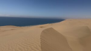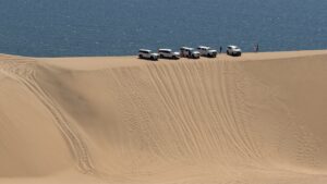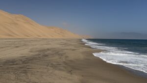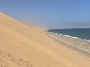 Selbstfahren in den ganz hohen Dünen wäre sicher lustig, mit schweren Overlandern aber nicht empfehlenswert wegen der steilen Abfahrten und vielleicht auch der einen oder anderen Herausforderung in der Navigation. Am Strand entlang kann man gut bis Sandwich Harbour fahren, muss jedoch die Tidentabelle im Auge behalten.