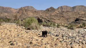 Abseits von der Lebensader Oranje wirkt die schroffe, unwirtliche Landschaft auf uns wie ein wuchtiger Kontrast zu den lieblichen, blumenübersäten Wiesen, die wir vor kurzem noch durchwandert haben.