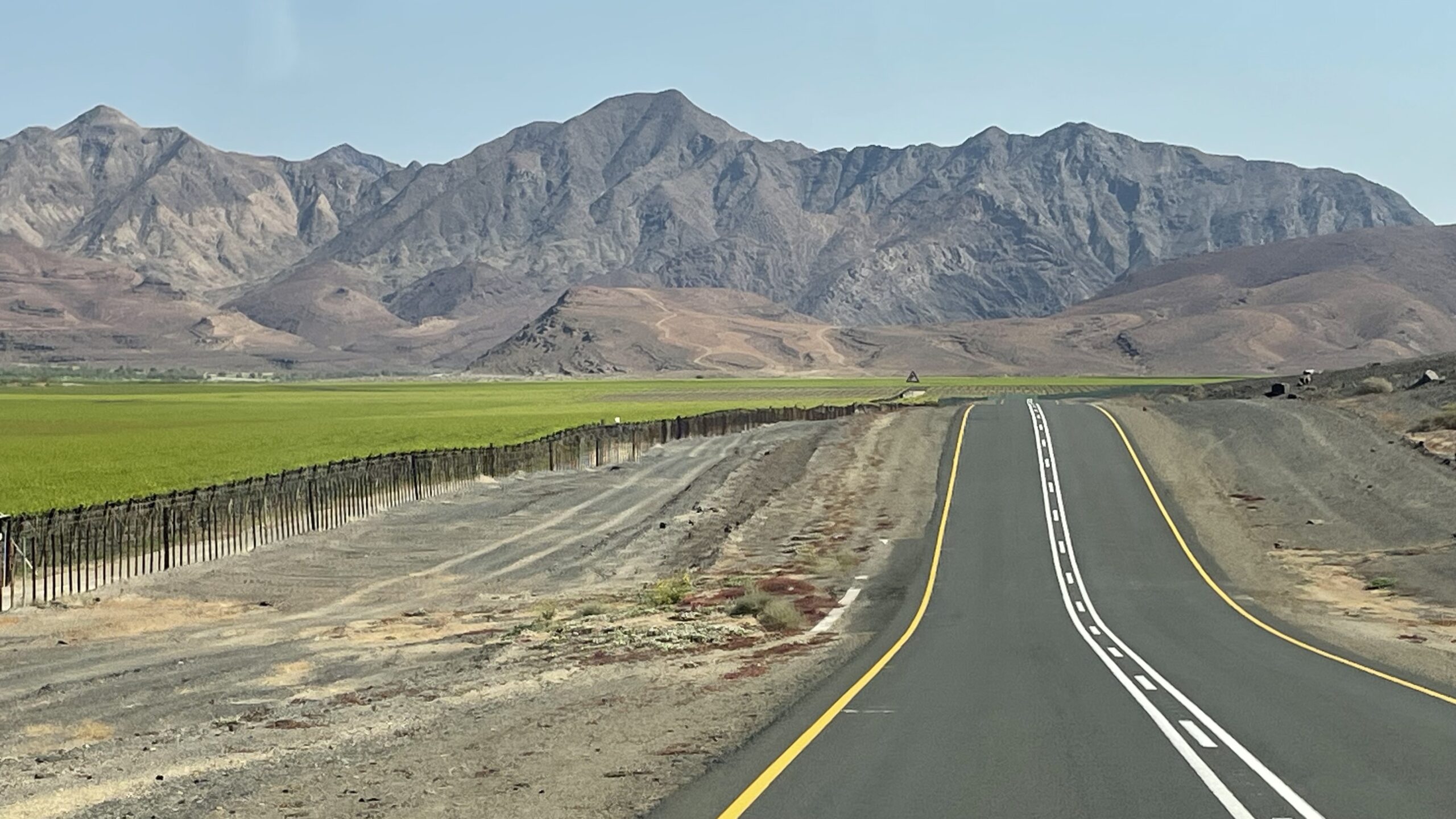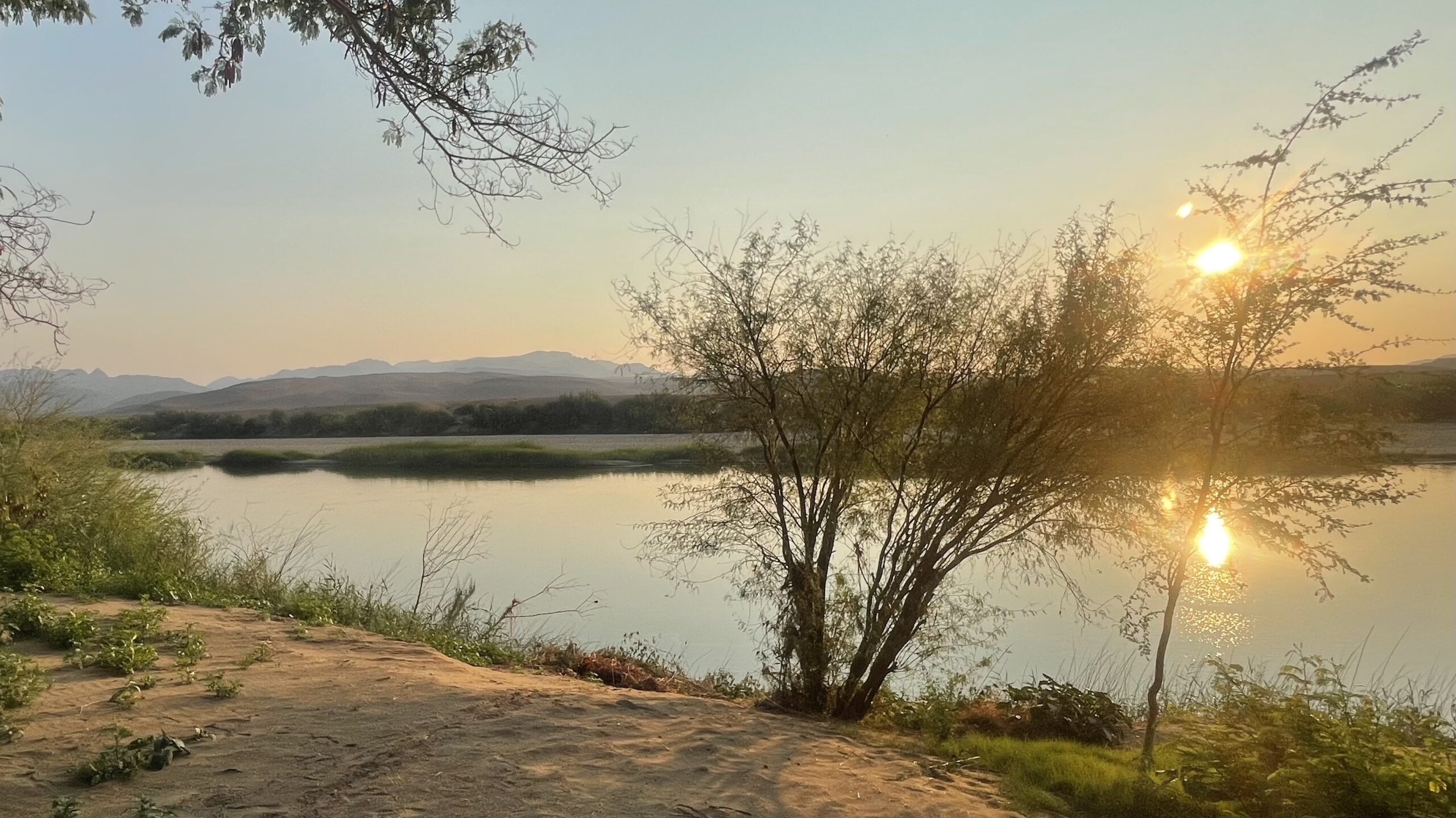In Aussenkehr, dem nächsten Ort am Oranje, finden wir ein schönes Camp zwischen den weitläufigen Traubenplantagen direkt am Fluss, die einen relativ schmalen, saftig grünen Streifen bilden und sich abheben von der sonst kargen braunen Wüstenebene auf namibischer Seite und den Bergen am südafrikanischen Flussufer.