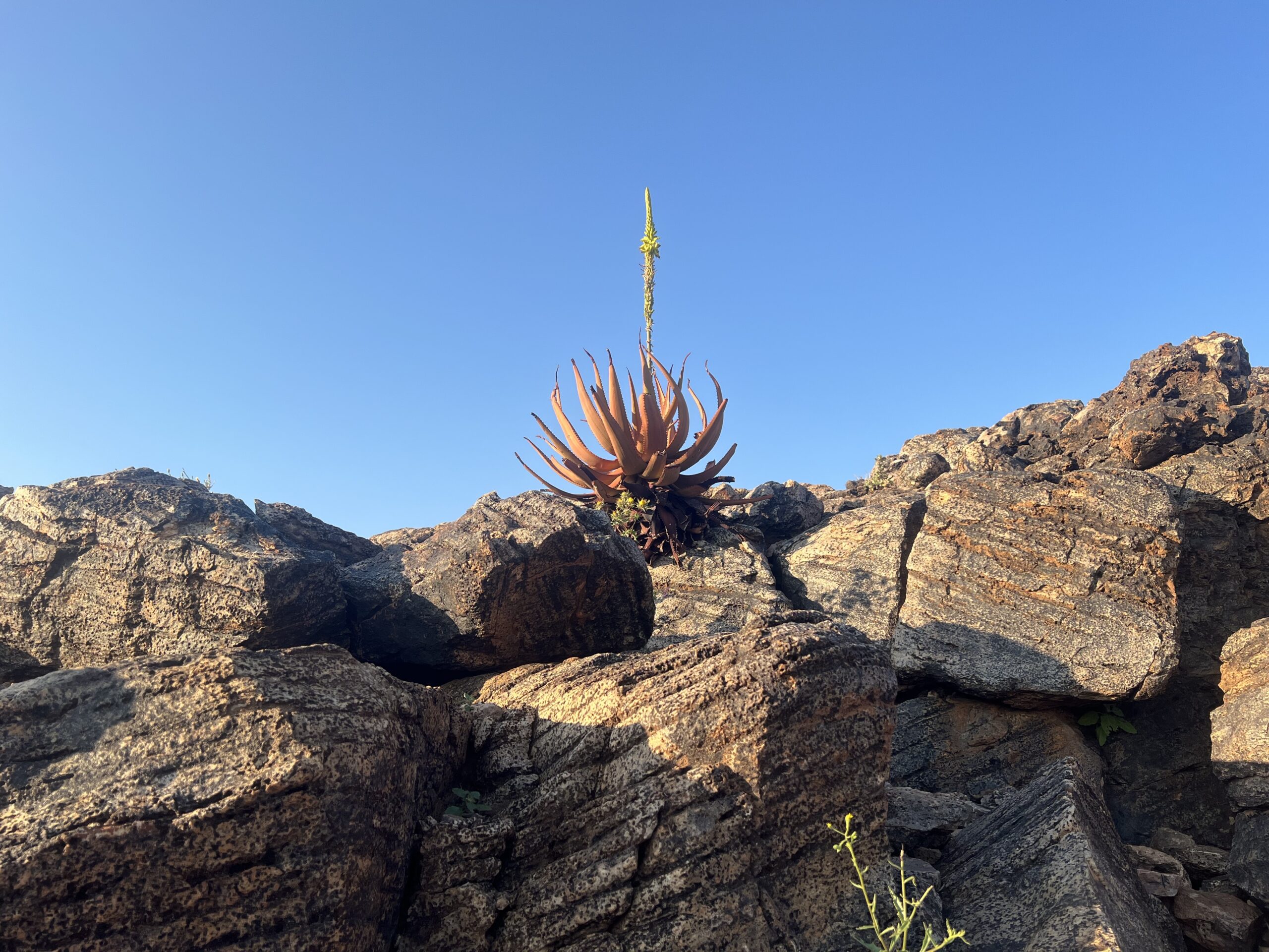 Abseits von der Lebensader Oranje wirkt die schroffe, unwirtliche Landschaft auf uns wie ein wuchtiger Kontrast zu den lieblichen, blumenübersäten Wiesen, die wir vor kurzem noch durchwandert haben.